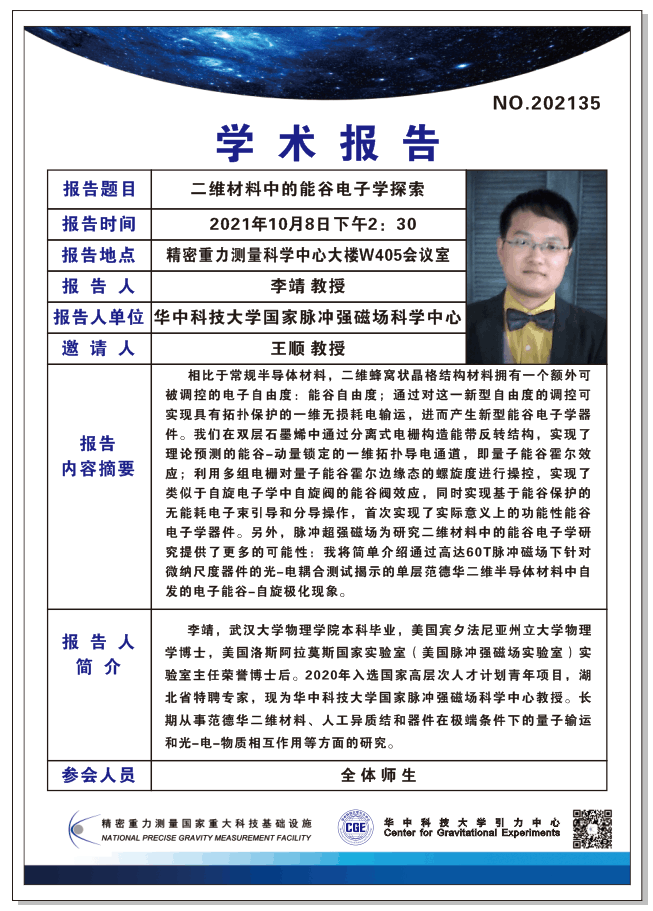2021年10月8日 华中科技大学国家脉冲强磁场科学中心 李靖教授报告